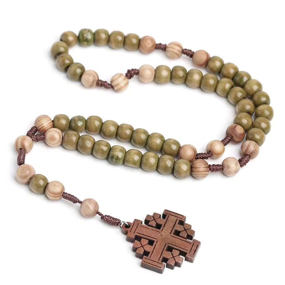 Natural Wooden Catholic Rosary Cross Prayer Beads Christianity Church Jerusalem Ornaments Rosaries Jewelry